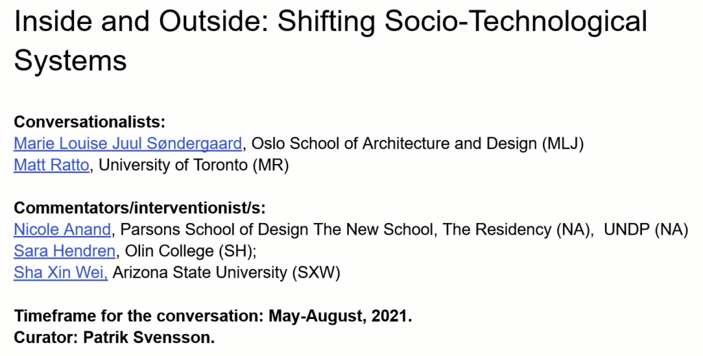 "Inside and Outside: Shifting Socio-Technological Systems"2021/8Online